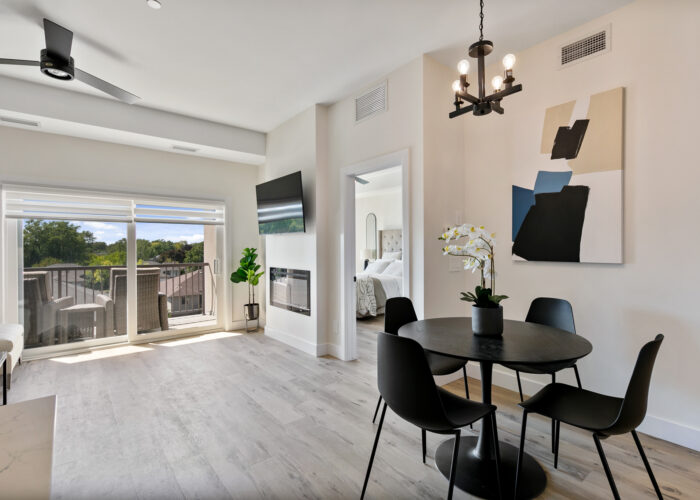 Secluded behind a 6′ high brick wall, the suites in the Courtyard Collection feature an urban oasis with a private outdoor landscaped courtyard that offers additional living spaces ranging from 350 to over 500 square feet.